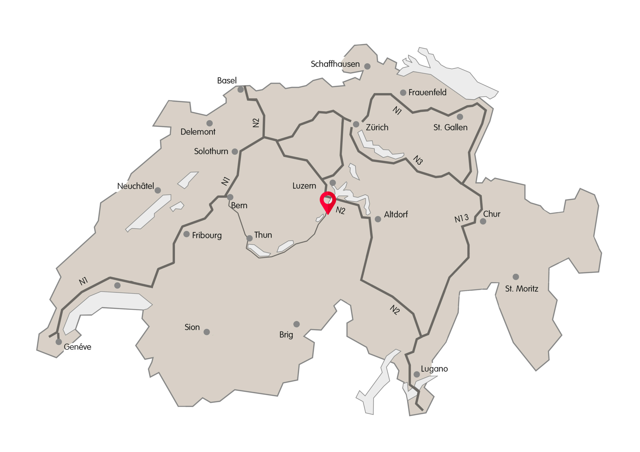 - Luzern ~25–30 min (via A8/A2)